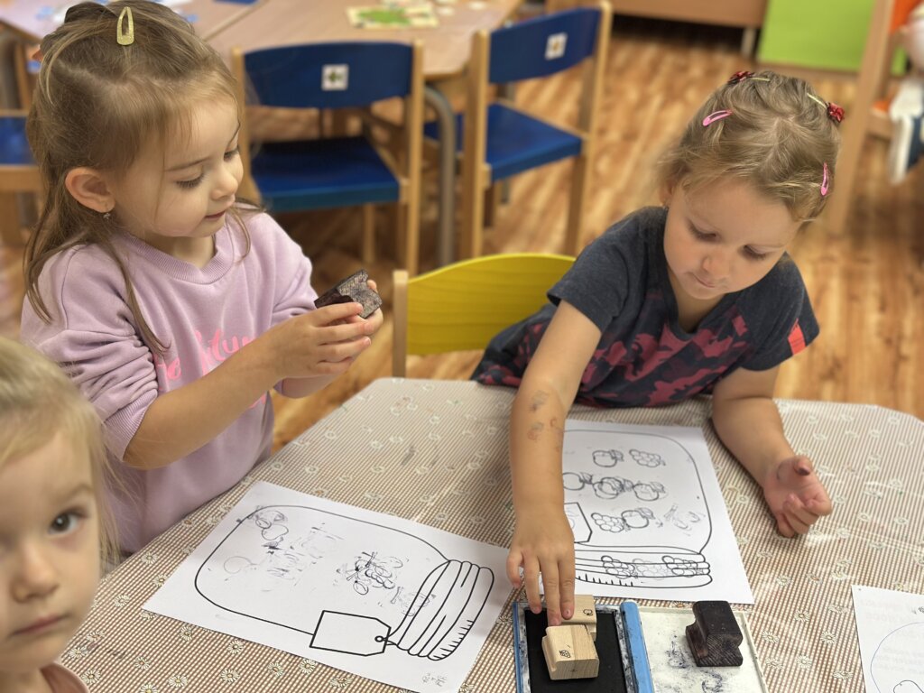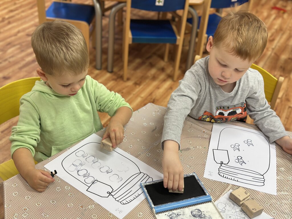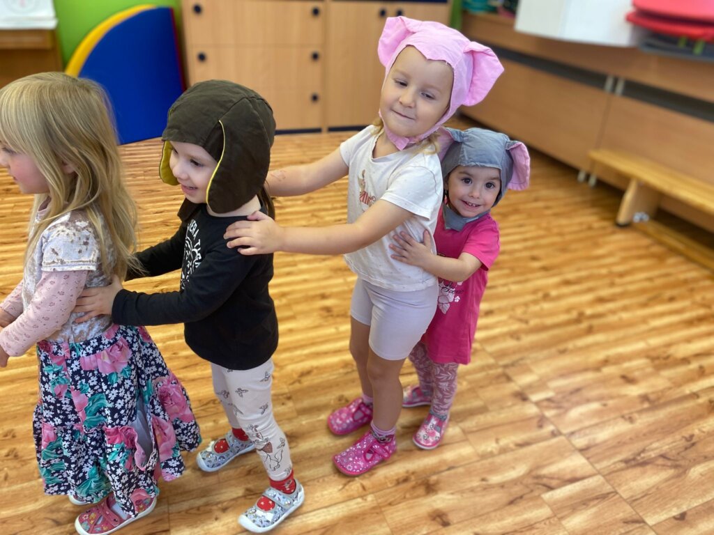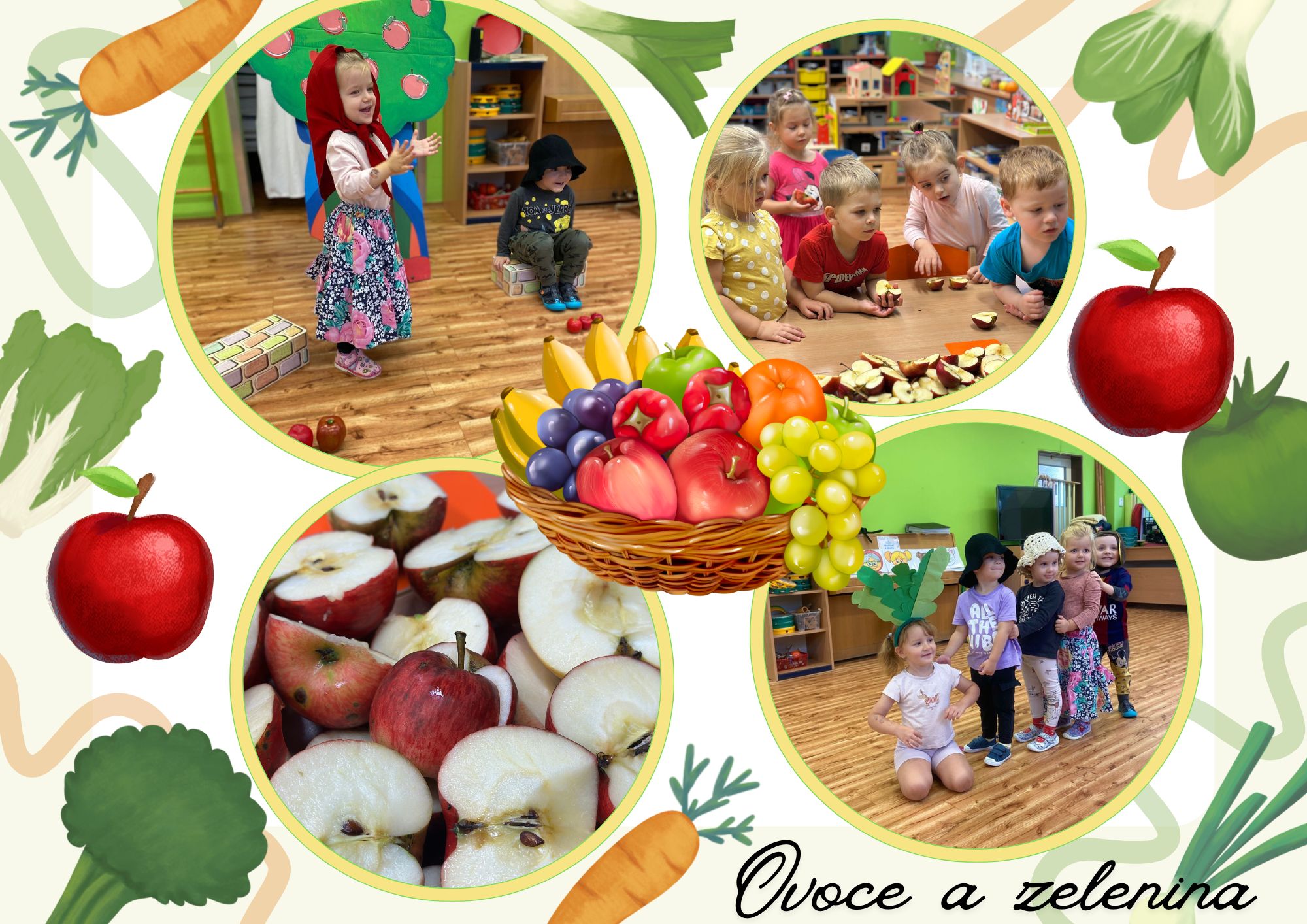 Během minulých týdnů jsme se s dětmi věnovali tématu ovoce a zeleniny. Třídili jsme je podle barev, poznávali jejich chutě a povídali si, co roste v zemi a co nad zemí. Velký úspěch měla pohádka o červené řepě, kterou si děti samy zahrály s veselými divadelními čepičkami. Naučili jsme se písničku „Měla babka čtyři jablka“ a doplnili ji tanečkem. Ve výtvarné dílně jsme otiskovali brambory a výsledky naší práce si můžete prohlédnout v šatně. Také jsme si vlastnoručně vyrobili jablečný mošt – a moc nám chutnal! Při vycházce jsme navštívili místní zahrádkáře, kde jsme poznávali různé plodiny a viděli, jak se pěstují. Děti si tyto dny užily všemi smysly a odnesly si spoustu nových zážitků.