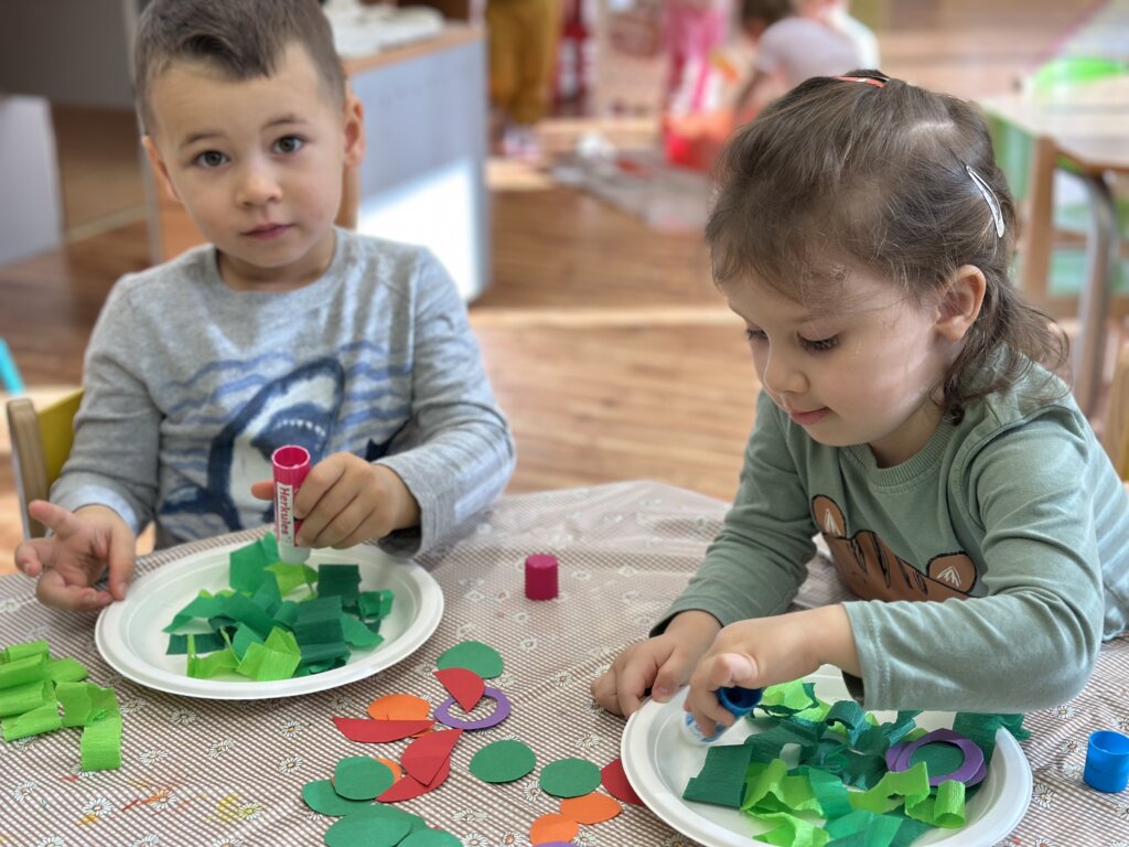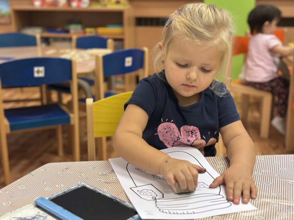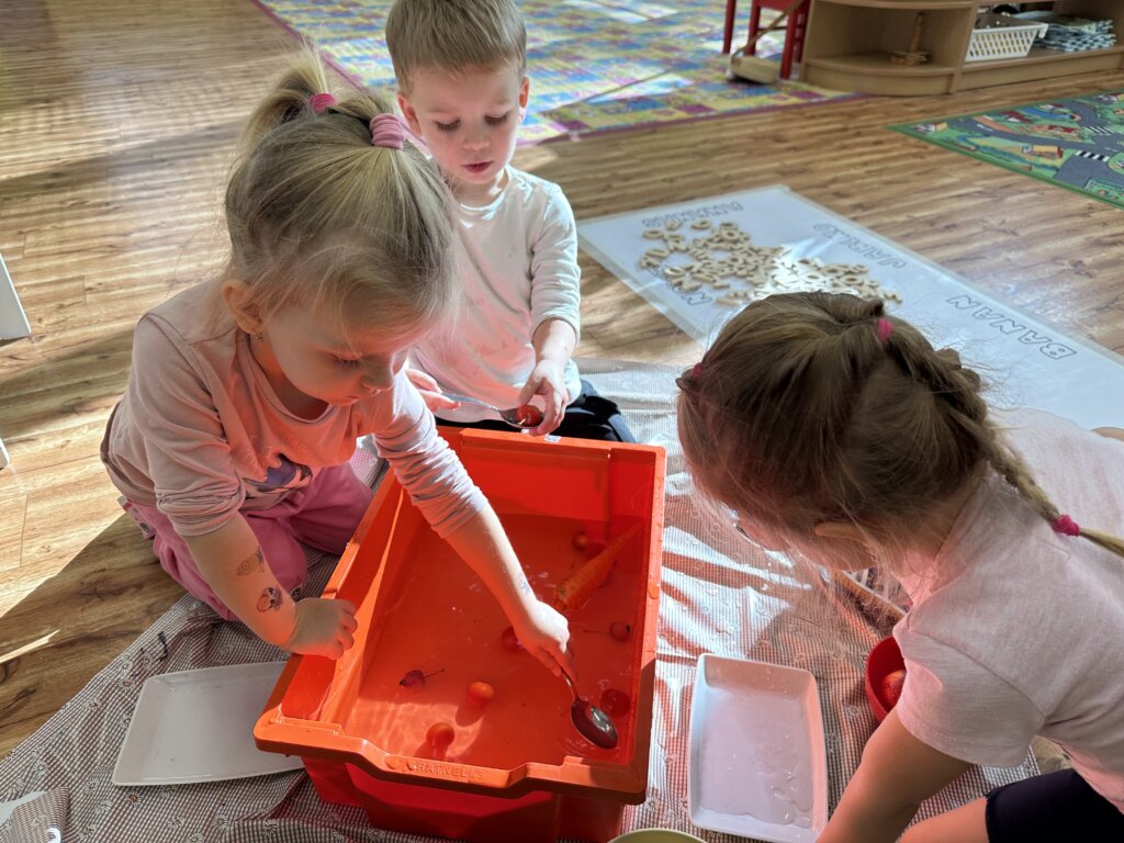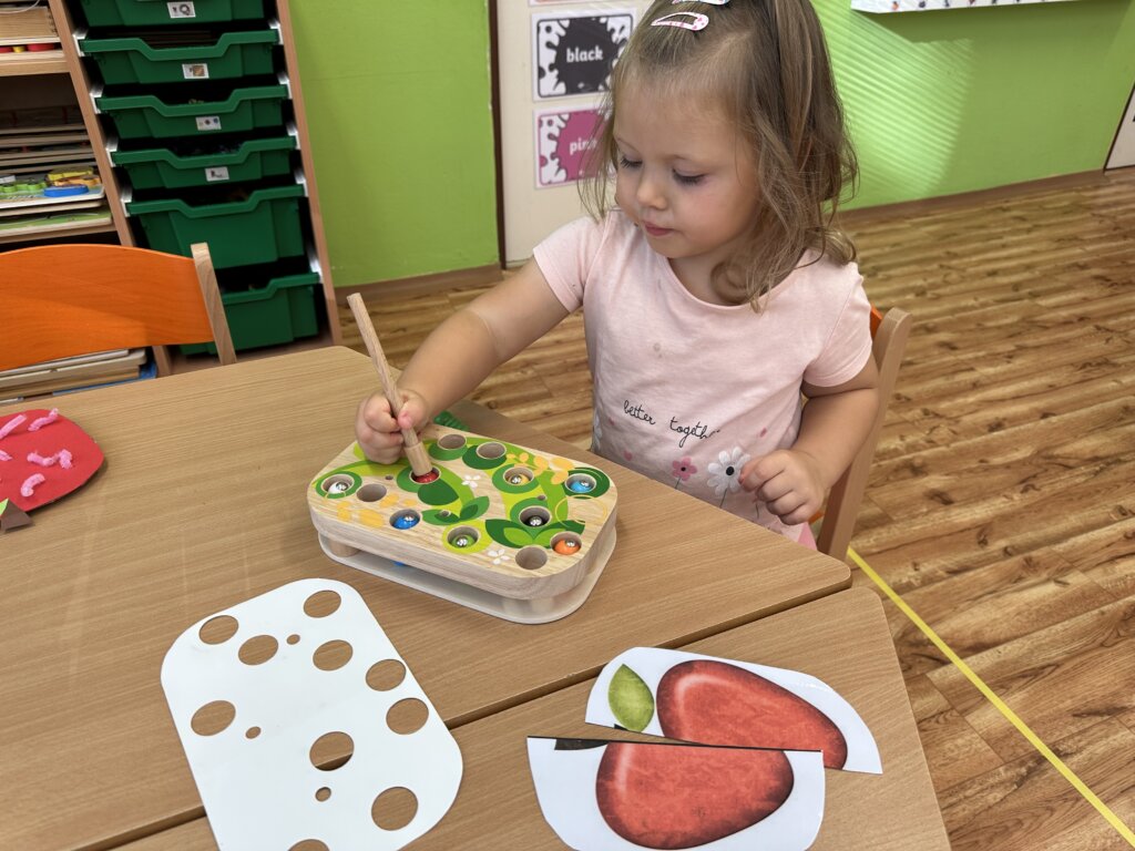 Během minulých týdnů jsme se s dětmi věnovali tématu ovoce a zeleniny. Třídili jsme je podle barev, poznávali jejich chutě a povídali si, co roste v zemi a co nad zemí. Velký úspěch měla pohádka o červené řepě, kterou si děti samy zahrály s veselými divadelními čepičkami. Naučili jsme se písničku „Měla babka čtyři jablka“ a doplnili ji tanečkem. Ve výtvarné dílně jsme otiskovali brambory a výsledky naší práce si můžete prohlédnout v šatně. Také jsme si vlastnoručně vyrobili jablečný mošt – a moc nám chutnal! Při vycházce jsme navštívili místní zahrádkáře, kde jsme poznávali různé plodiny a viděli, jak se pěstují. Děti si tyto dny užily všemi smysly a odnesly si spoustu nových zážitků.