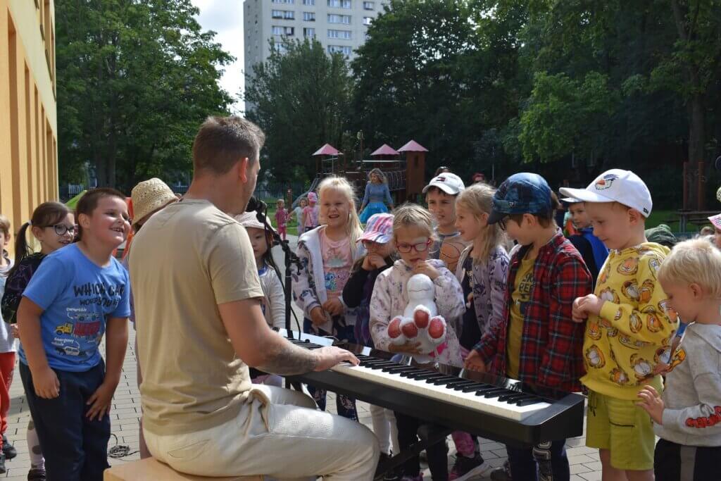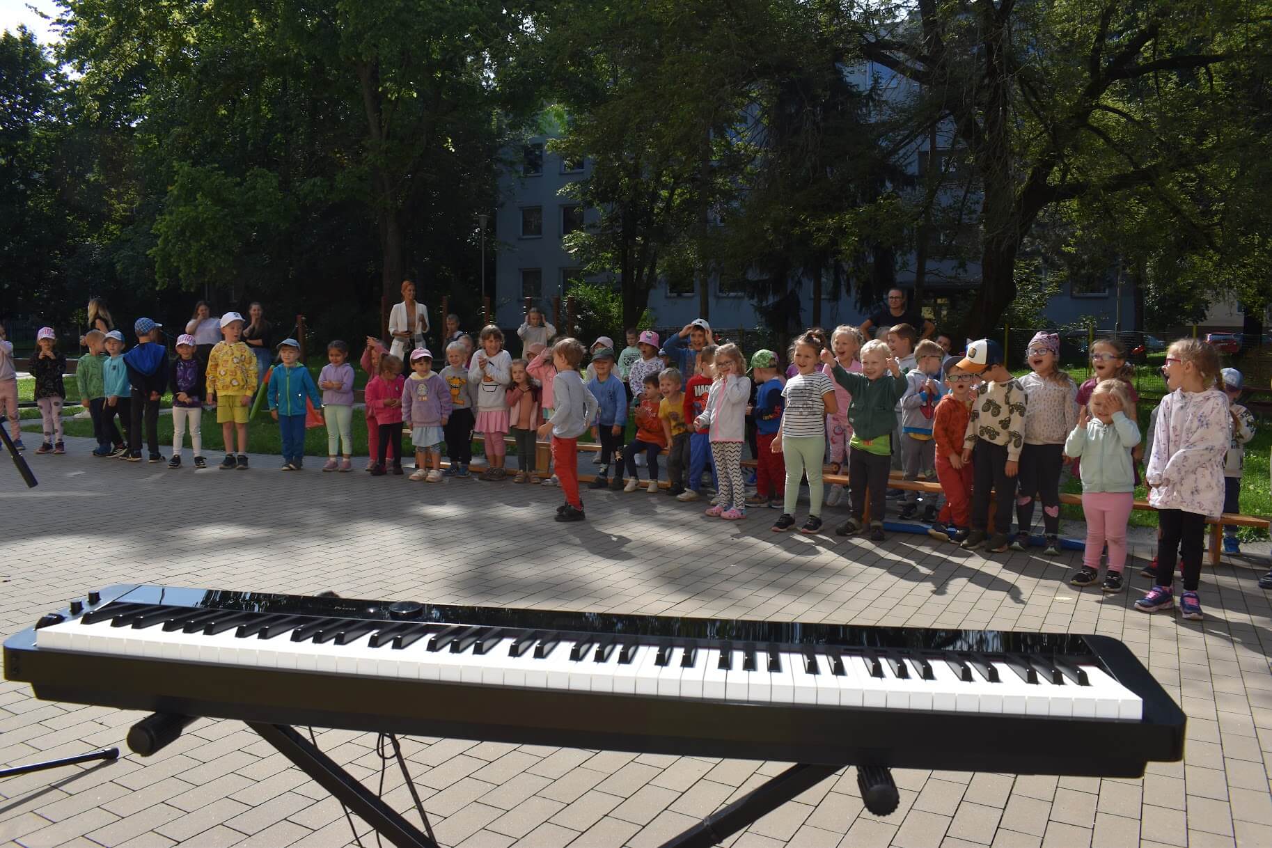 Co se to dnes dělo na zahradě? Tančilo se, zpívalo, tleskalo a smálo! Navštívilo nás totiž hudební duo „Za oponou“ – úžasný klavírista Dominik a krásná zpěvačka Danka, které děti prostě milují.