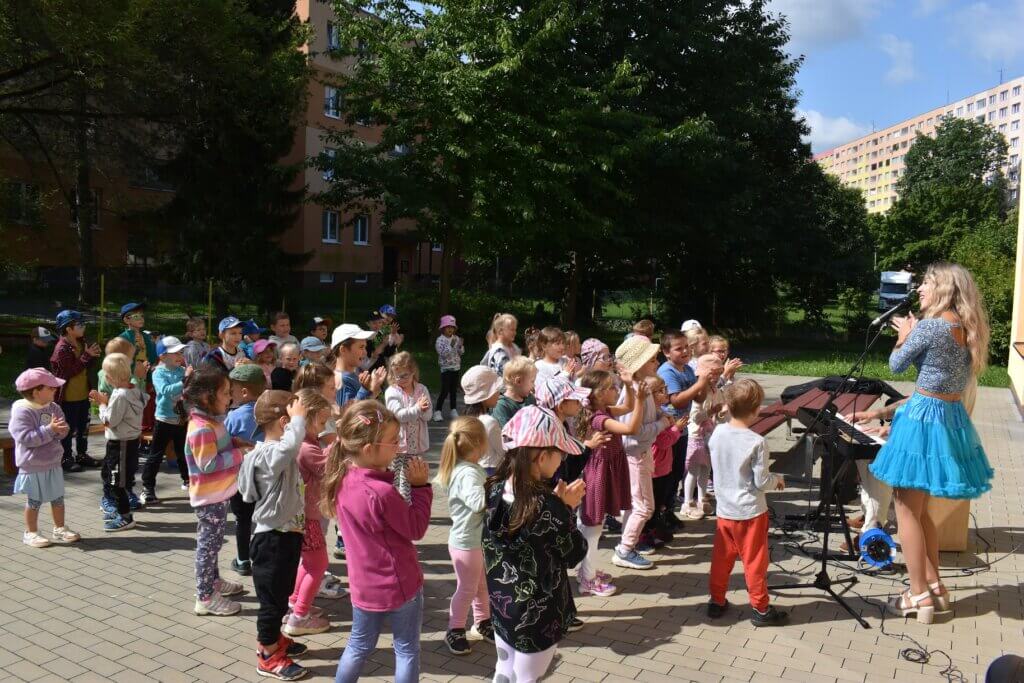 Jakmile zazněly první tóny, nožky začaly podupávat do rytmu a během chvilky už tančila celá zahrada. Sluníčko svítilo, vesele zněly písničky a z dětí se stalo jedno velké zpívající a hýbající se publikum.